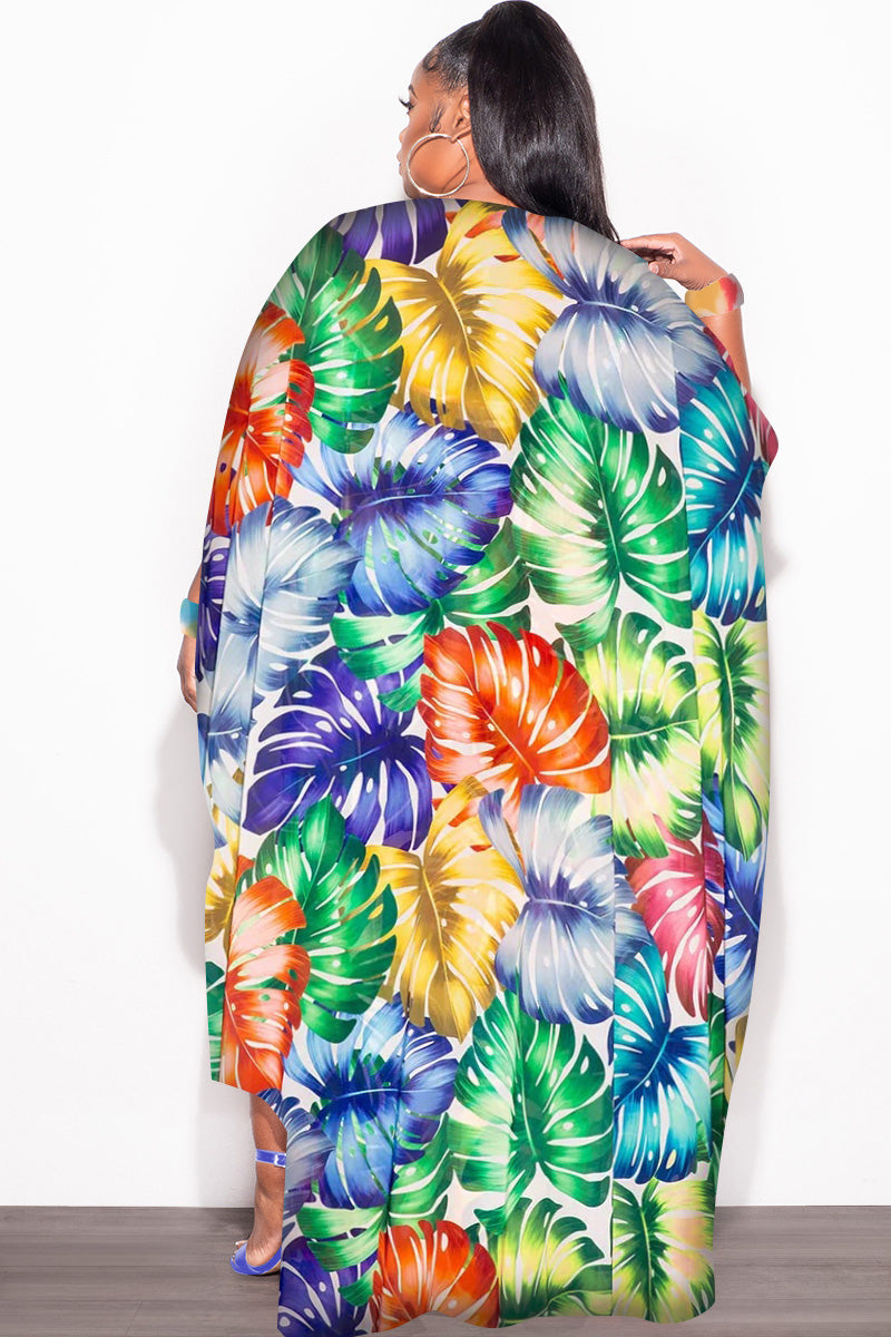 Final Sale Plus Size Chiffon Duster With Wrist Cuff in Multi-Color Palm Print
