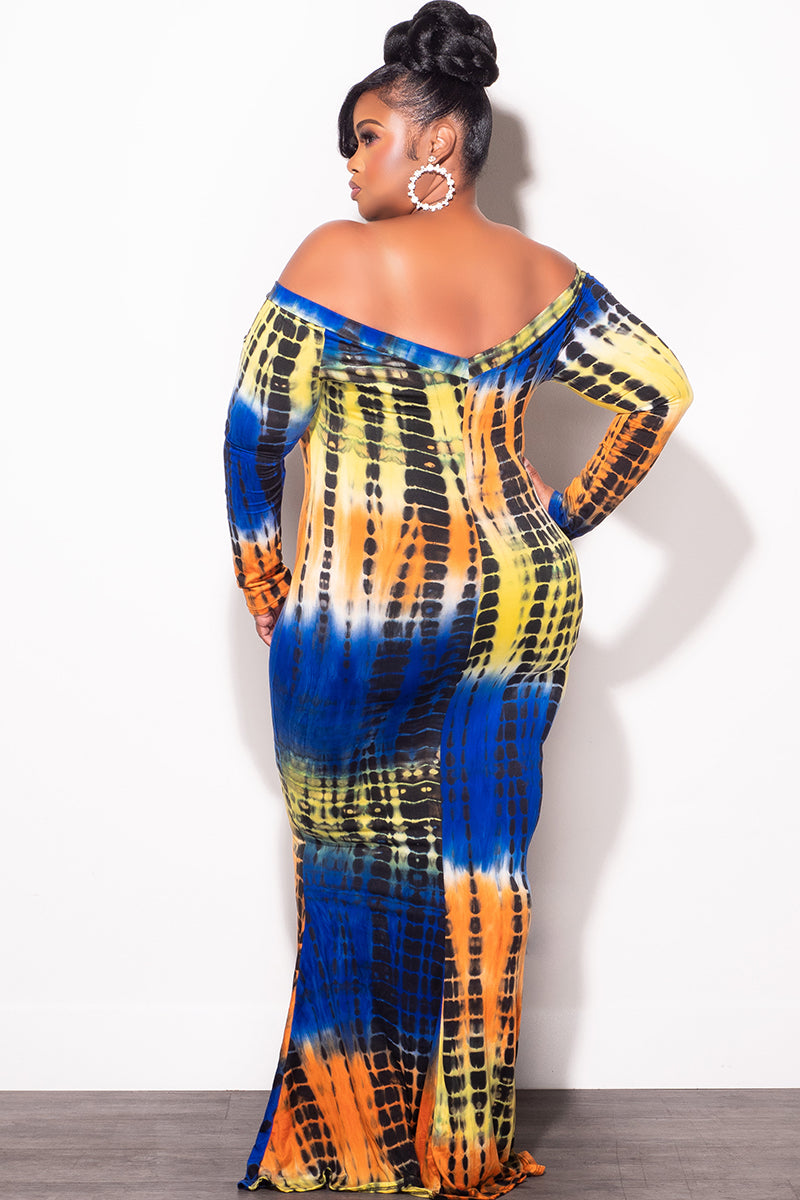 Final Sale Plus Size Bodycon Maxi Dress in Royal Blue Tie Dye Print