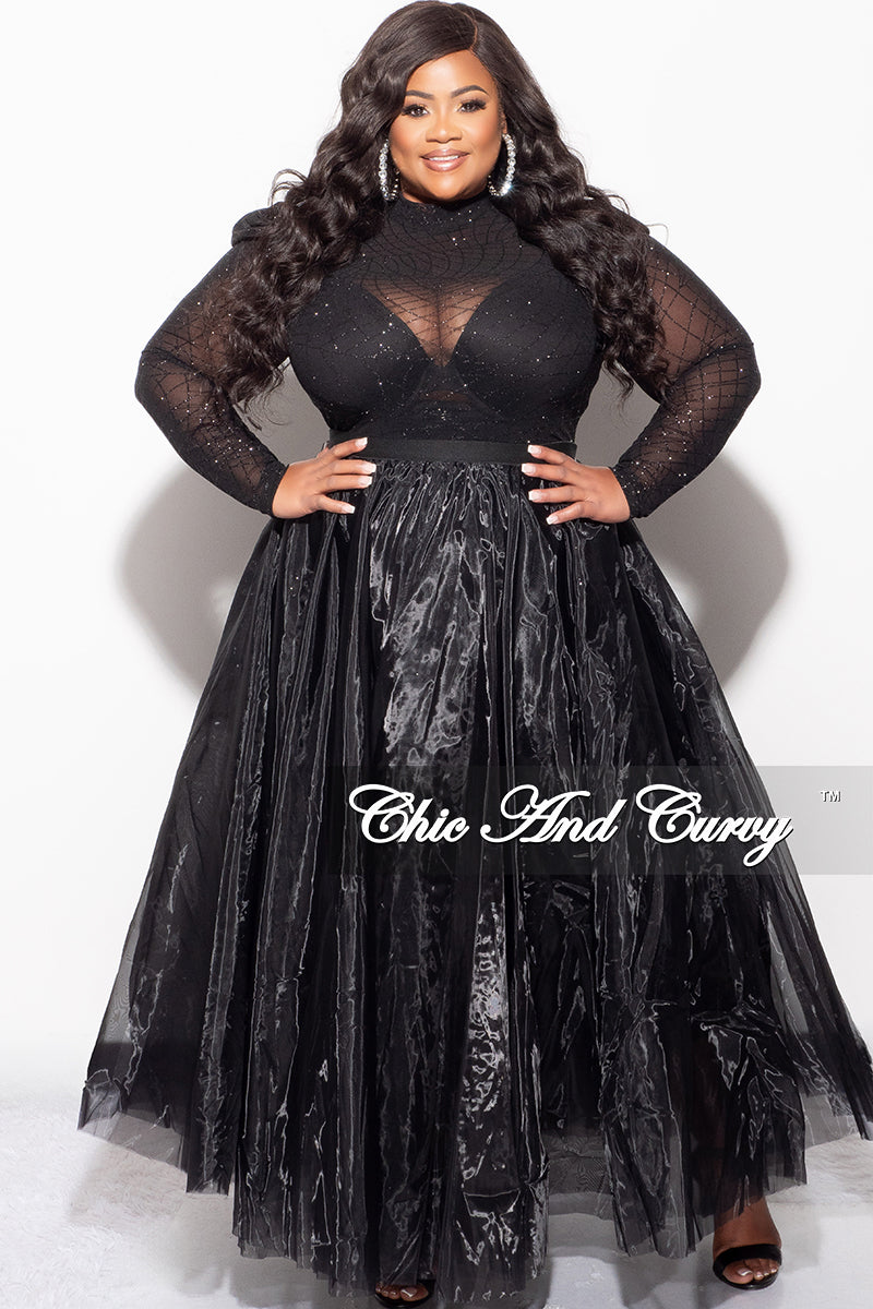 Final Sale Plus Size Glitter Mesh Bodysuit in Black (Bodysuit Only)
