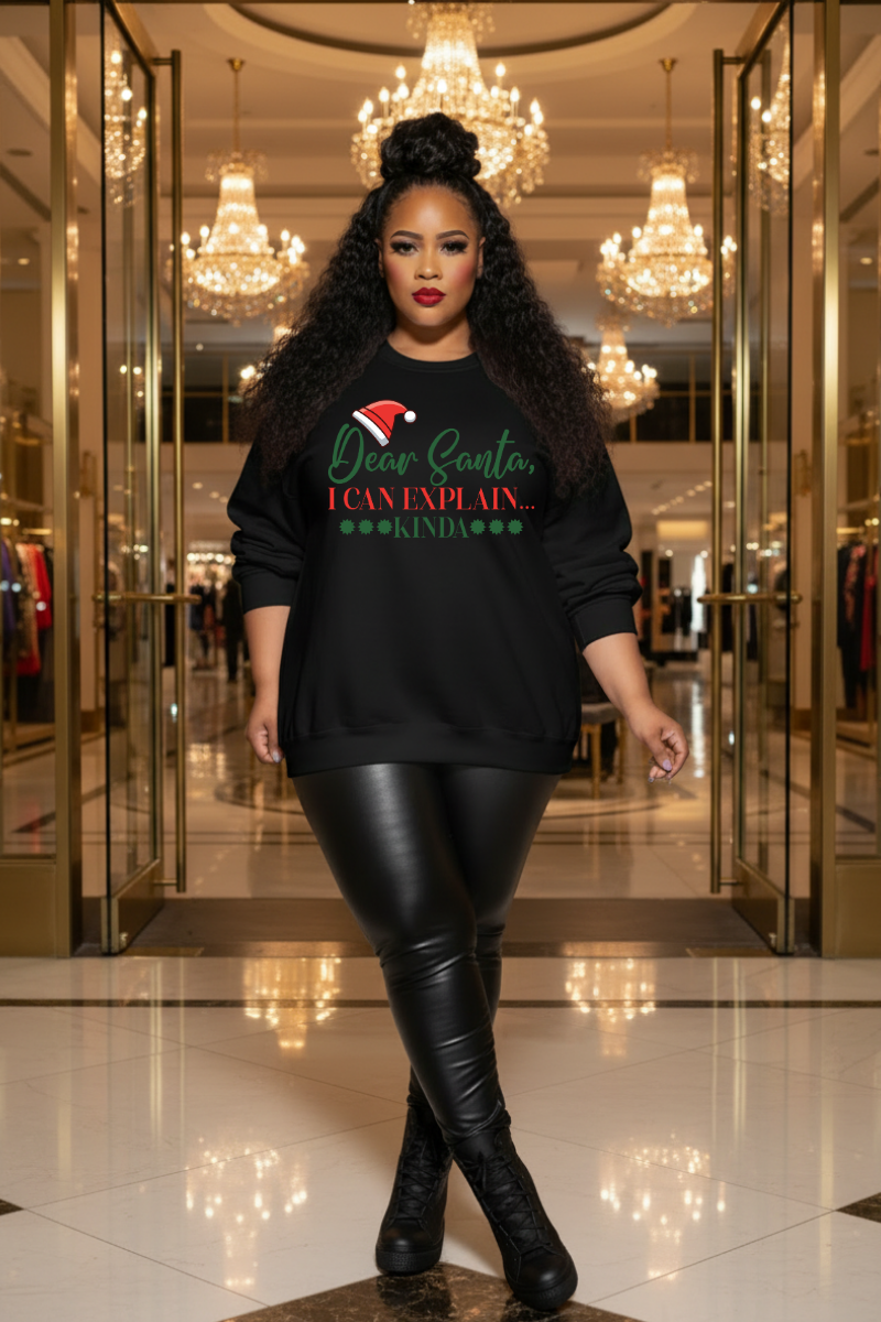 Dear Santa I Can Explain Kinda Sweatshirt | Christmas Santa Hat Holiday Tee