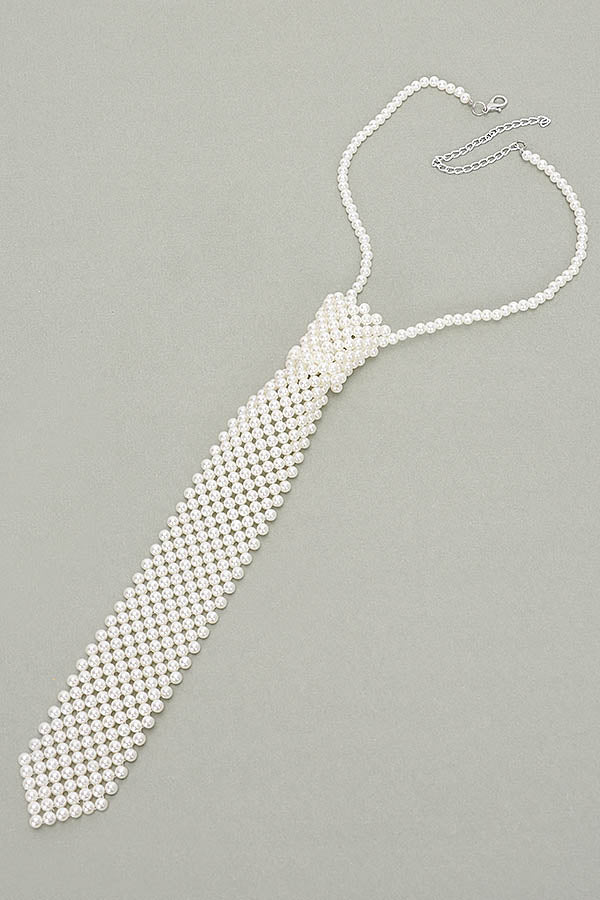 * Faux Pearl Polyester Necktie Necklace