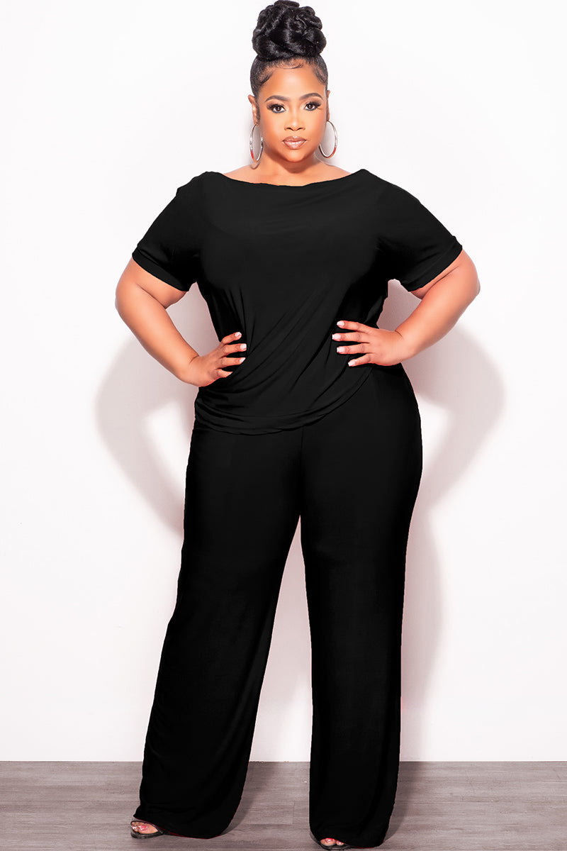 Final Sale Plus Size 2pc Top and Pants Set in Black