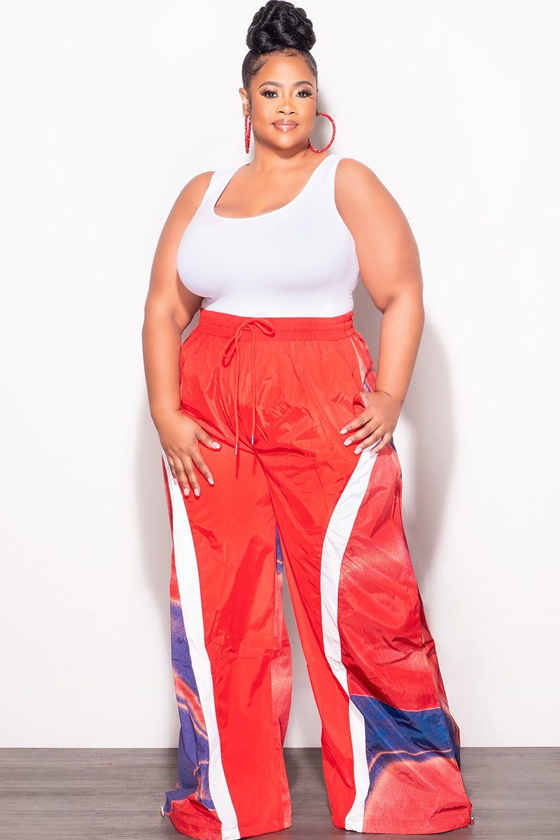 Final Sale Plus Size Oversized Windbreaker Wide Leg Pants in Red and Blue