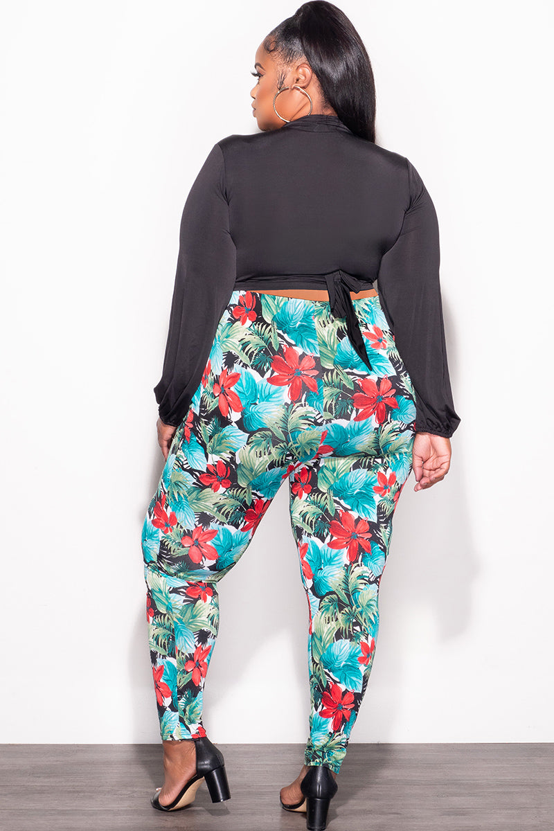 Final Sale Plus Size 2pc Wrap Top and Pants Set in Black Multi Color Print