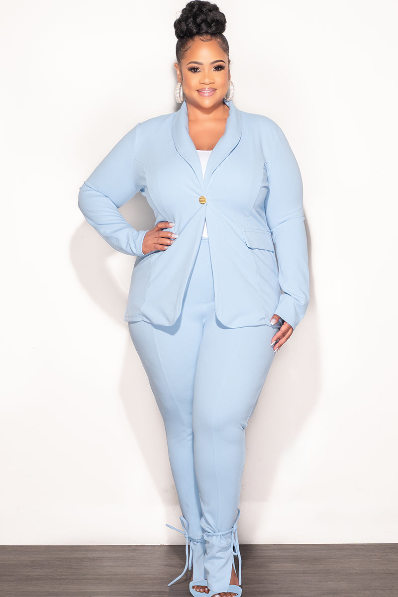 Final Sale Plus Size Blazer Suit 2pc Set in Soft Blue