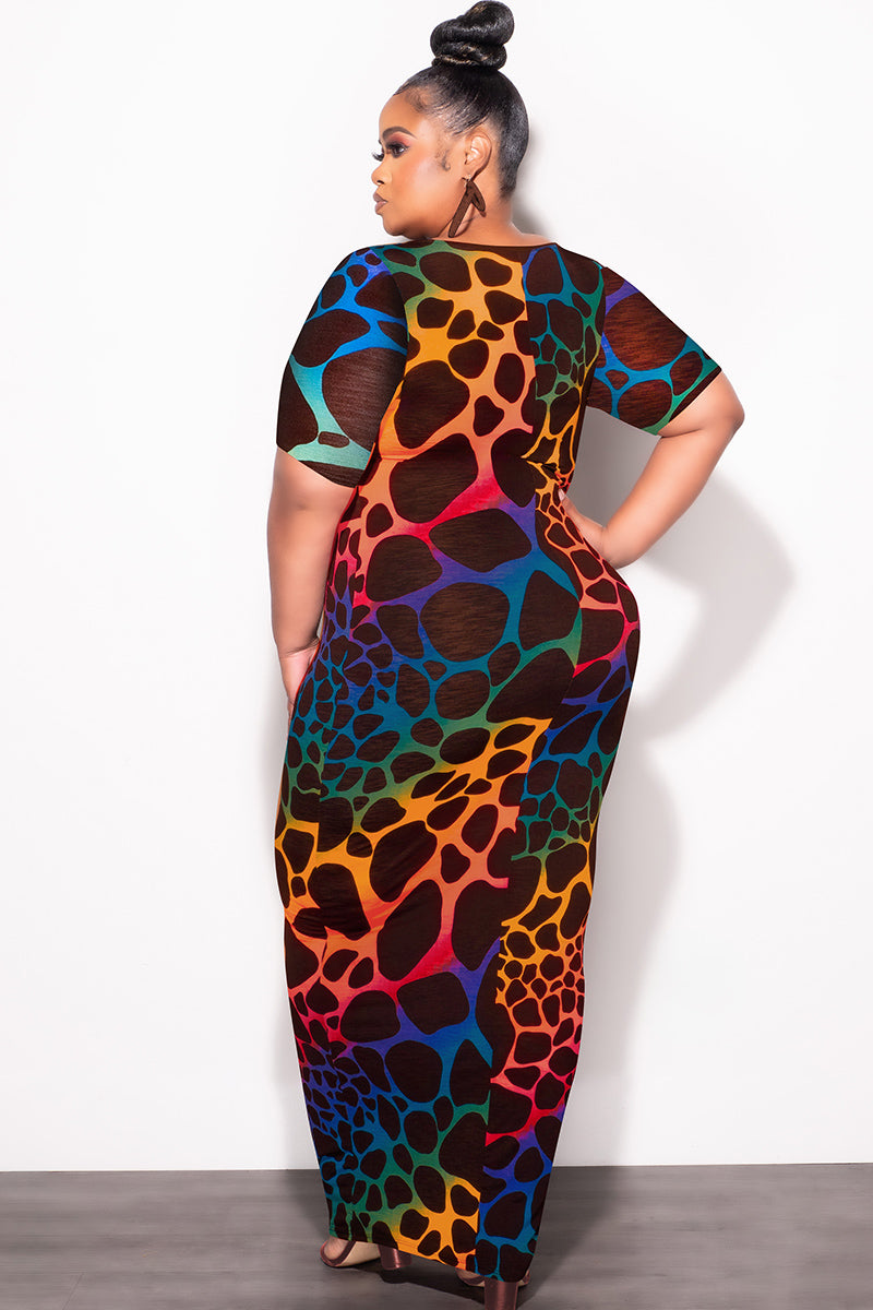 Final Sale Plus Size BodyCon Dress in Brown Background & Multi-Color Giraffe Print