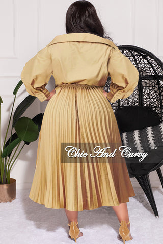 Final Sale Plus Size Off the Shoulder Collar Faux Wrap Dress with Bottom Pleats in Khaki Tan