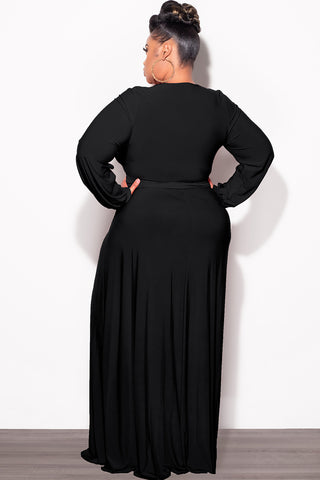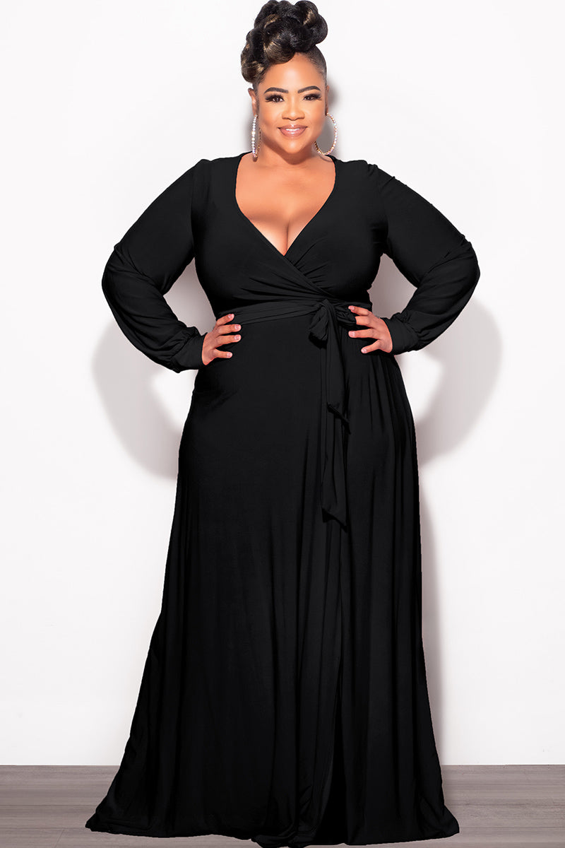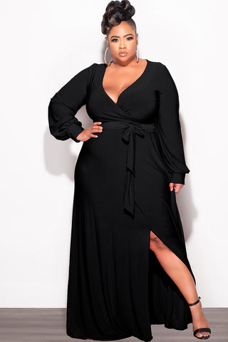 Final Sale Plus Size Faux Wrap Maxi Dress with Side Slit in Black