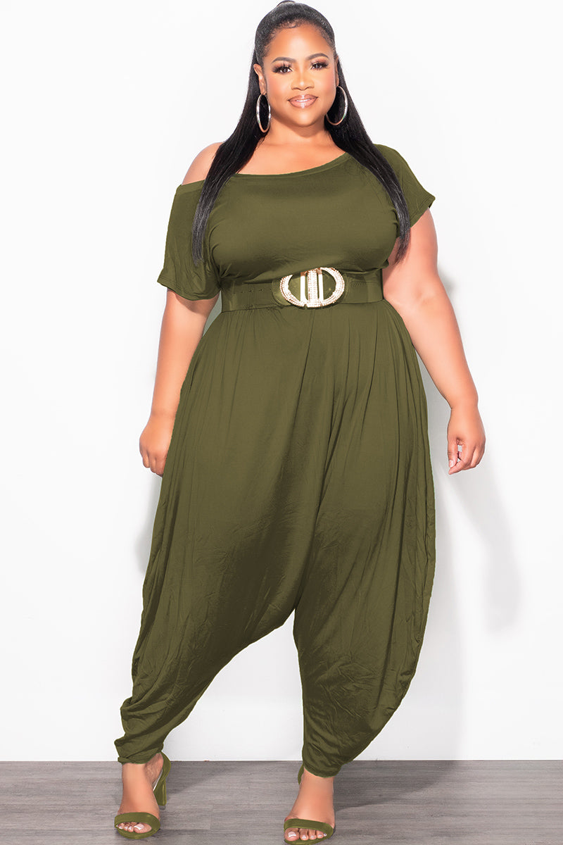 Final Sale Plus Size Harem Jumpsuit in Olive Green