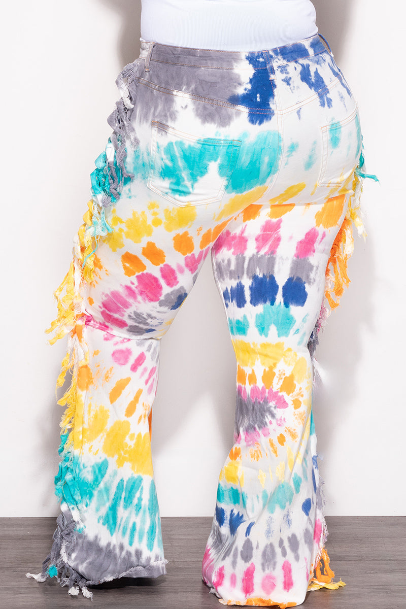 Final Sale Plus Size Jean with Fringe Trim in Multi Color Tie Dye Print