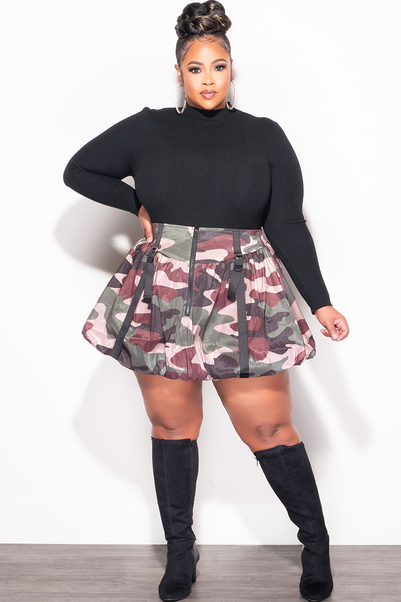 Final Sale Plus Size Bubble Mini Skirt in Camouflage Print