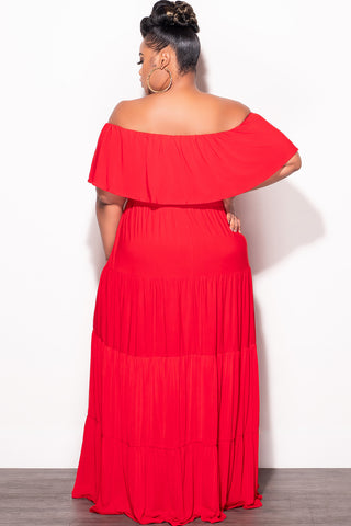 Final Sale Plus Size Off The Shoulder Tiered Maxi Dress in Red