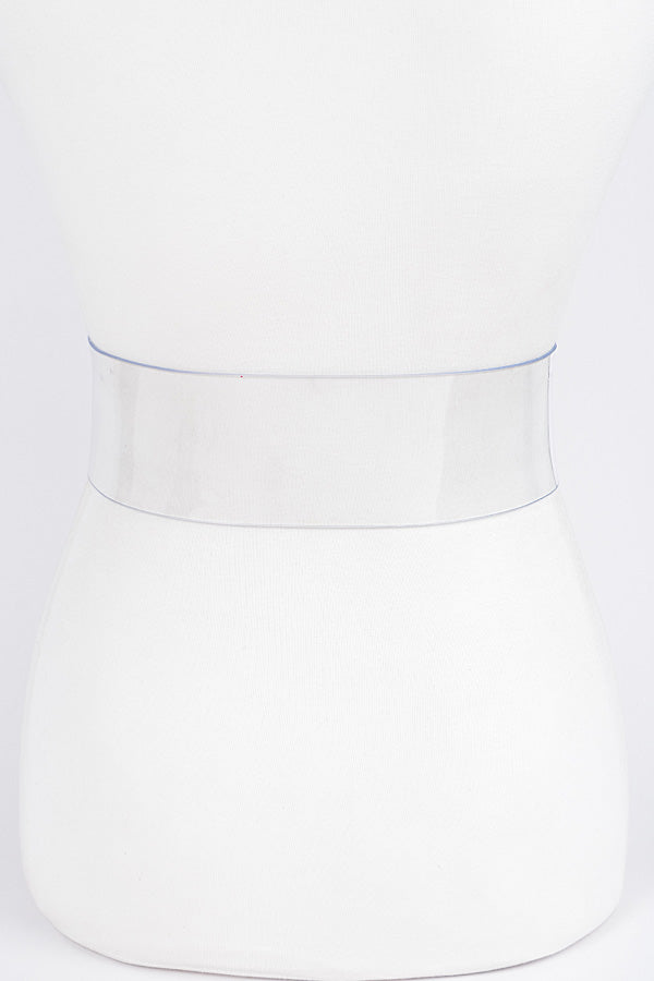 Wide Transparent Plus Size Belt W/Rhinestone Buckle