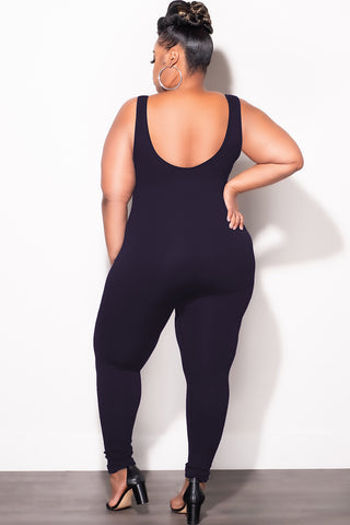 Final Sale Plus Size Thick Ribbed Catsuit Unitard in Black