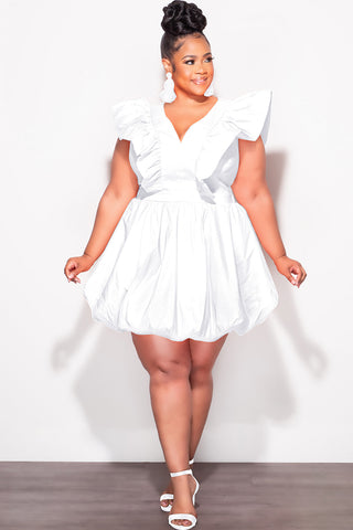 Final Sale Plus Size Ruffle Trim Babydoll Bubble Dress with Cutout Back in White