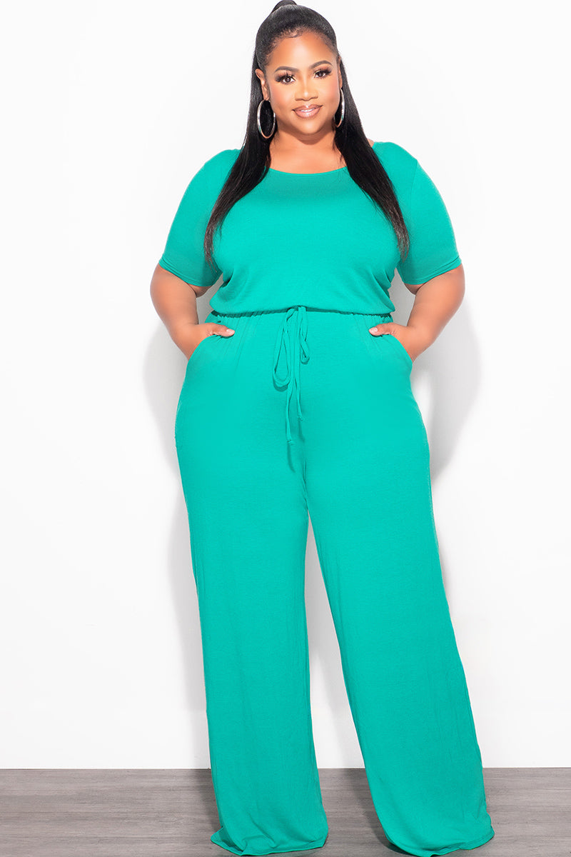 Final Sale Plus Size Short Sleeve Jumpsuit in Kelly Green