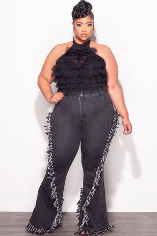 Final Sale Plus Size Sleeveless Cropped Halter Tulle & Mesh Top in Black