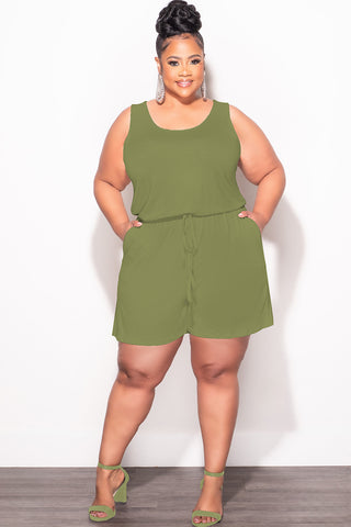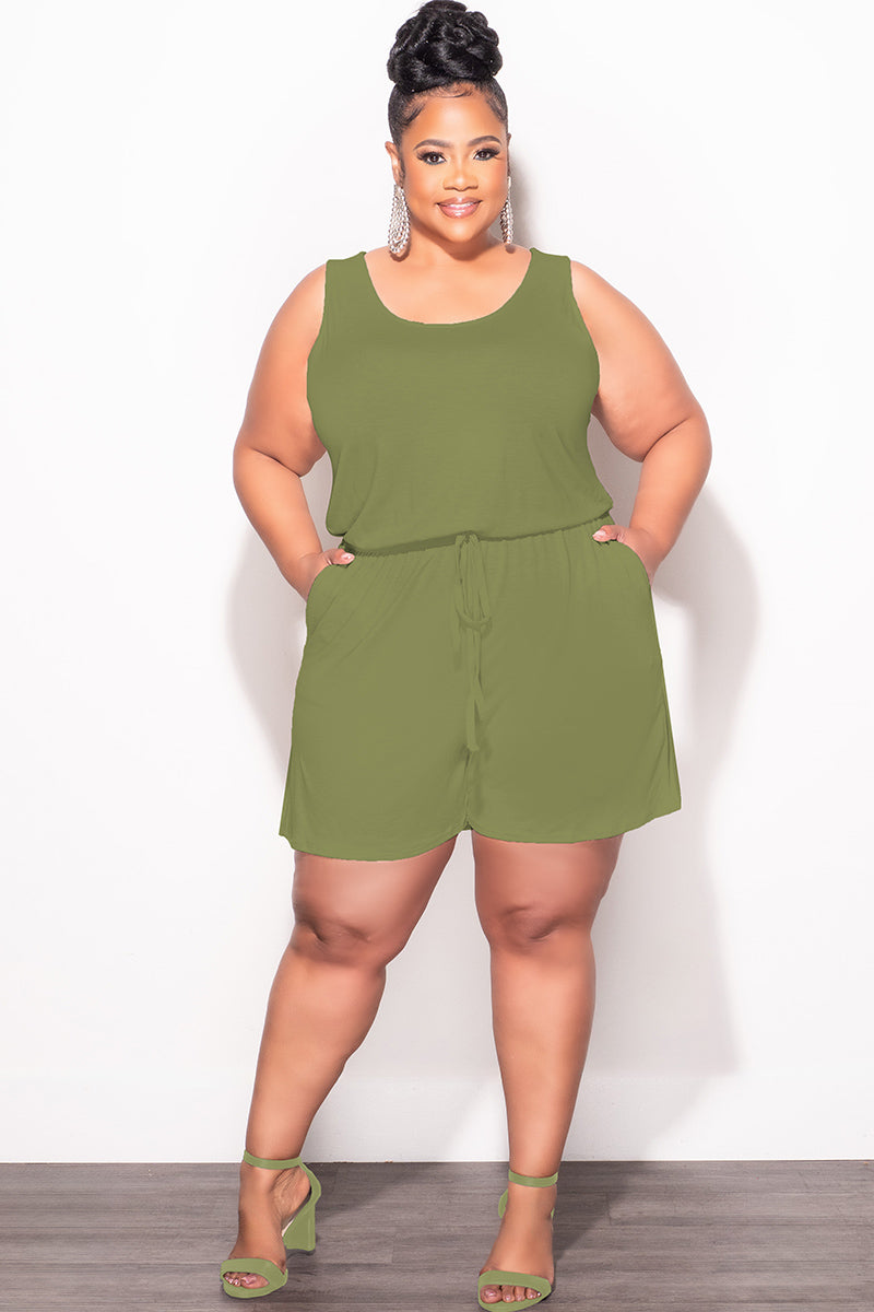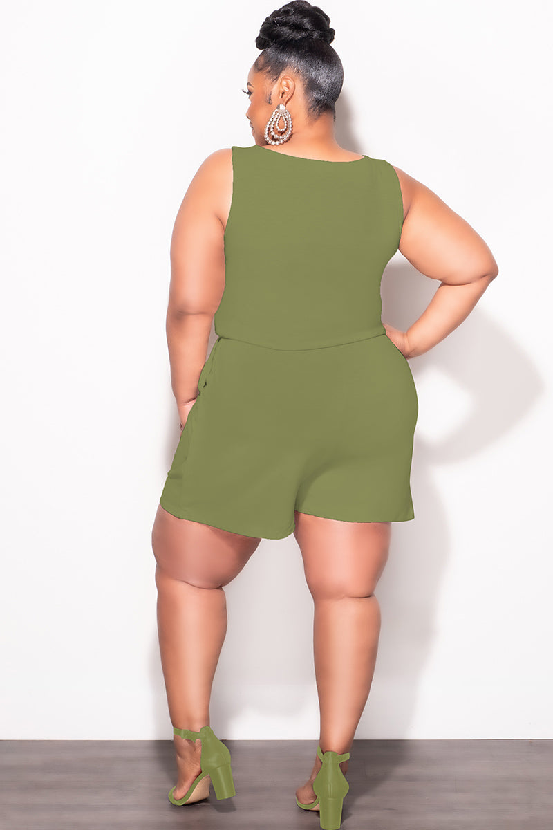 Final Sale Plus Size Sleeveless French Terry V Neck Romper in Olive