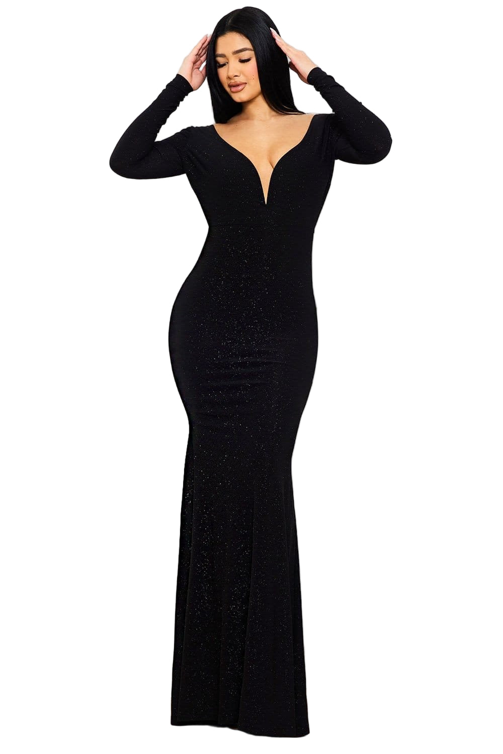 Final Sale Deep V Glitter Maxi Gown in Black
