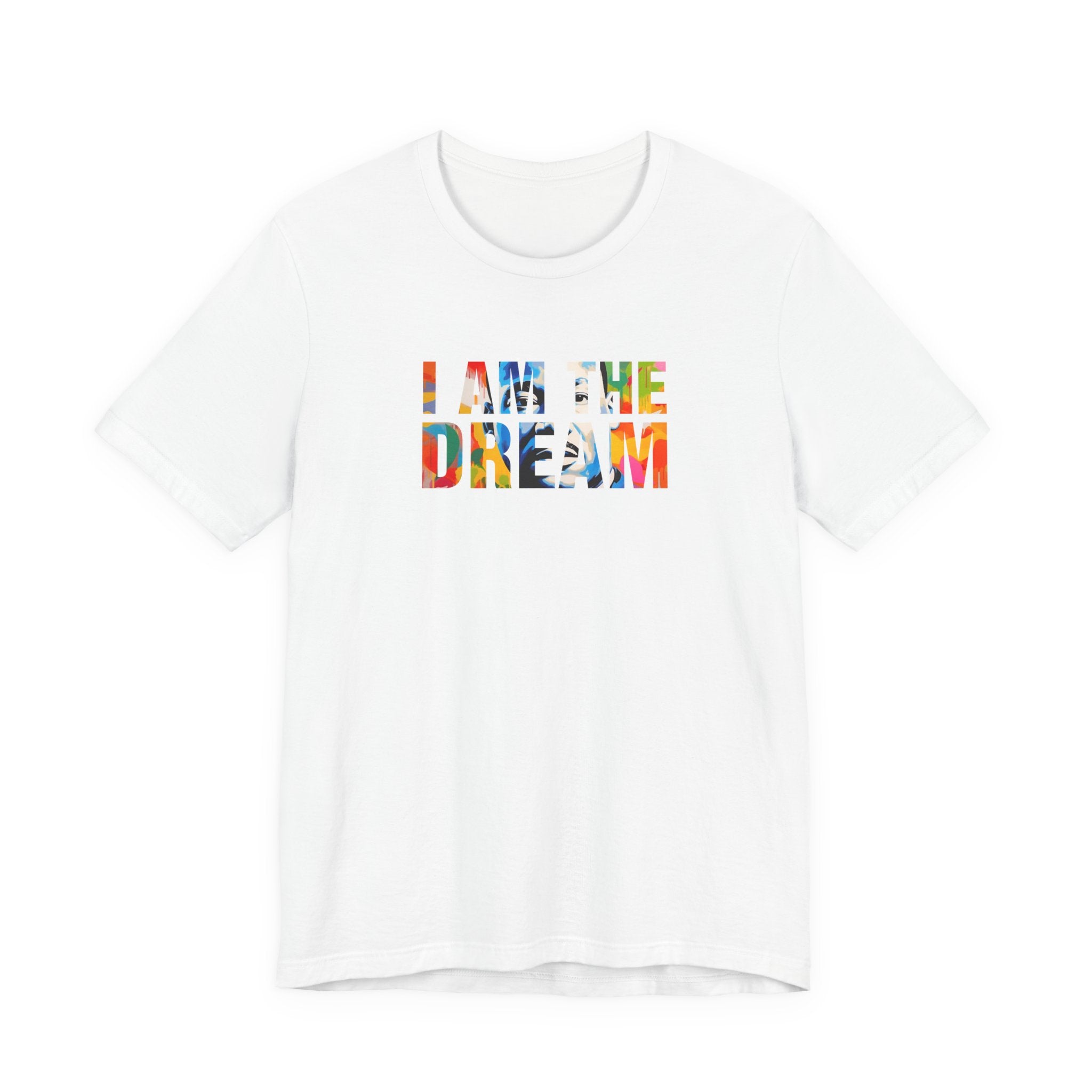 Vibrant, expressive, and full of purpose — this tee turns a powerful message into wearable art. Bold lettering spells out “I Am the Dream,” with each letter filled by a striking, painterly portrait rendered in rich blues, warm oranges, and layered color strokes. The artwork feels alive and dynamic, blending typography and illustration into a design that draws the eye and holds attention. Crafted from lightweight Airlume cotton, the tee offers a soft, breathable feel that’s comfortable for all day wear, whether styled on its own or layered for cooler moments. A clean crew neckline and retail fit keep the look balanced and modern, letting the artwork remain the focus. Ethically made and designed to maintain its shape over time, this shirt becomes a meaningful statement piece — one you wear when you want color, creativity, and message to move together as one.Product features- 100% Airlume combed & ring-spun cotton (lightweight 4.2 oz) for breathable comfort- Ribbed knit collar with seam plus shoulder tape for shape retention and reduced stretching- Side seams for improved structure and longer-lasting fit- Tear-away neck label to minimize skin irritation; REACH certified materials- Sleeve and neck-printing using DTF/DTG for crisp, vibrant artworkCare instructions- Machine wash: cold (max 30C or 90F)- Non-chlorine: bleach as needed- Tumble dry: low heat- Iron, steam or dry: medium heat- Do not dryclean