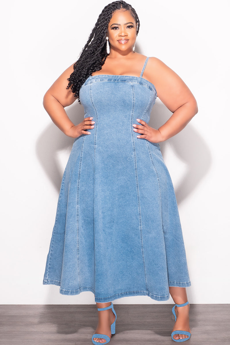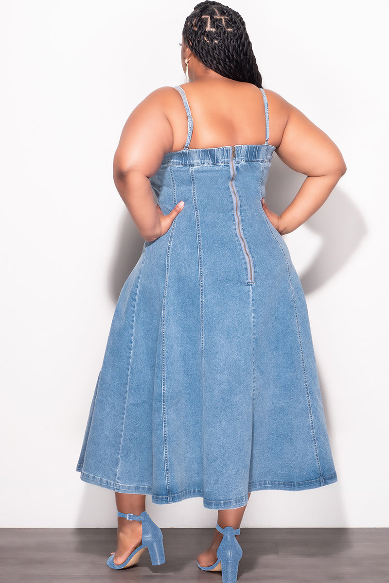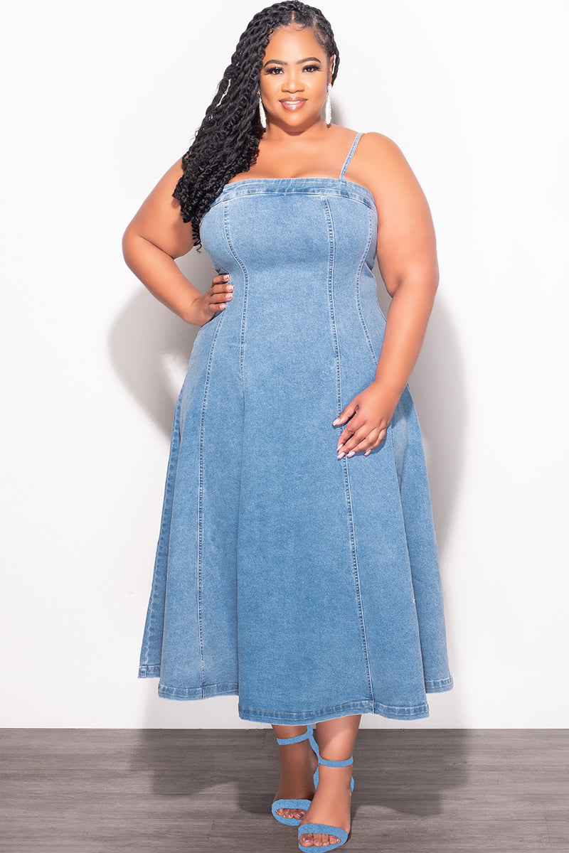 Final Sale Plus Size Spaghetti Strap Flare Dress in Denim