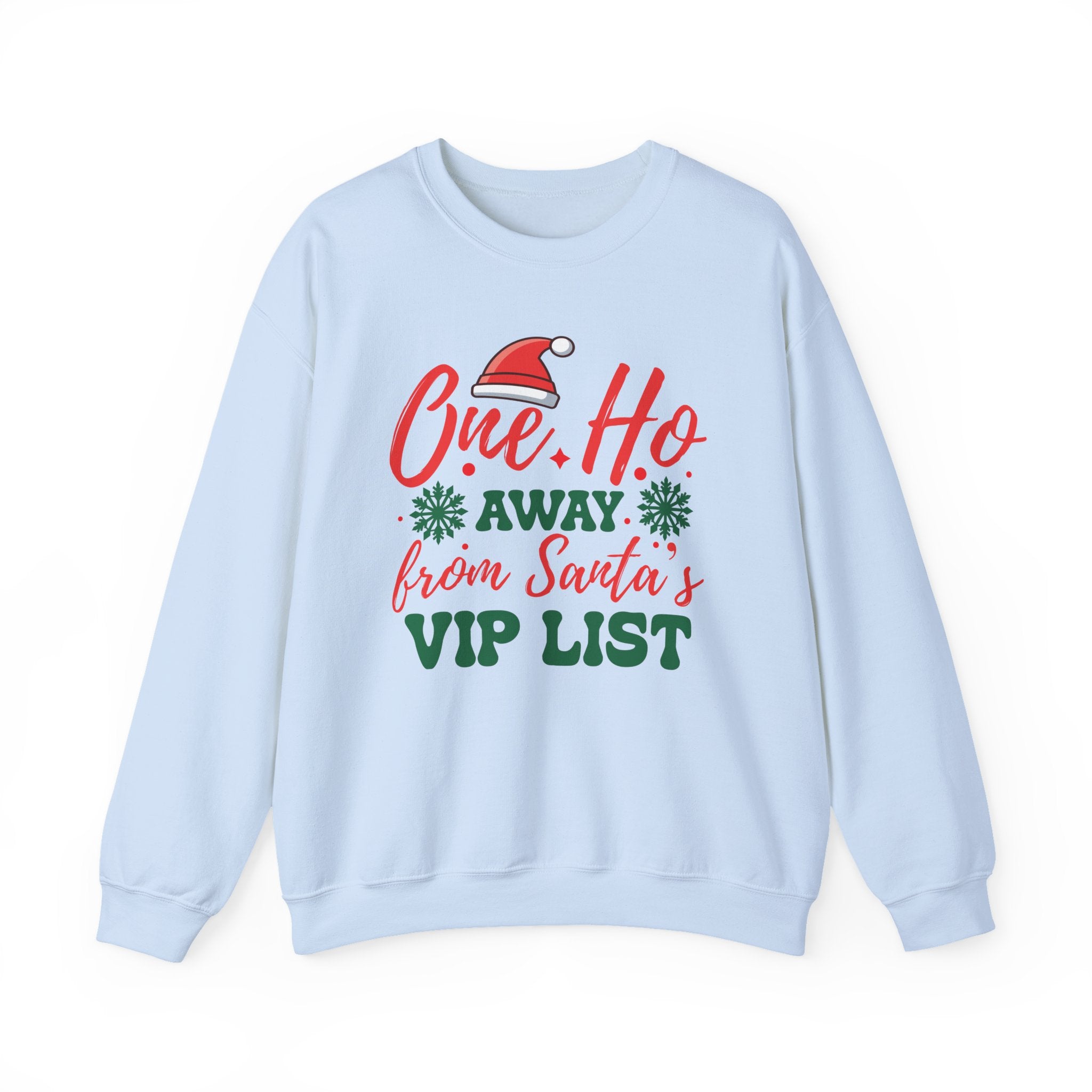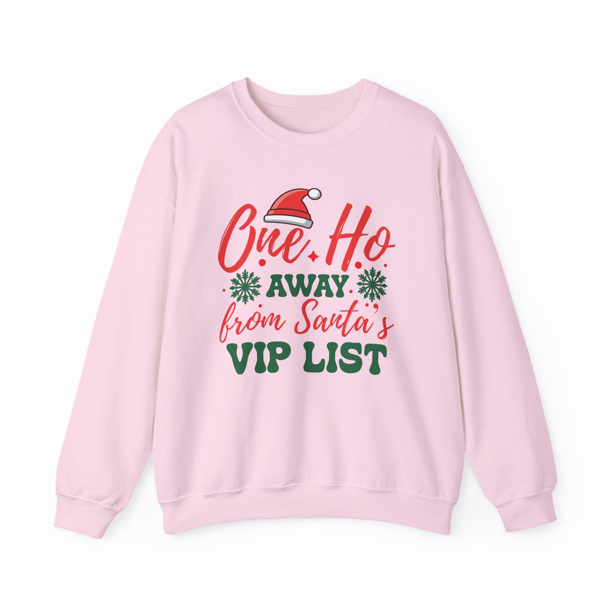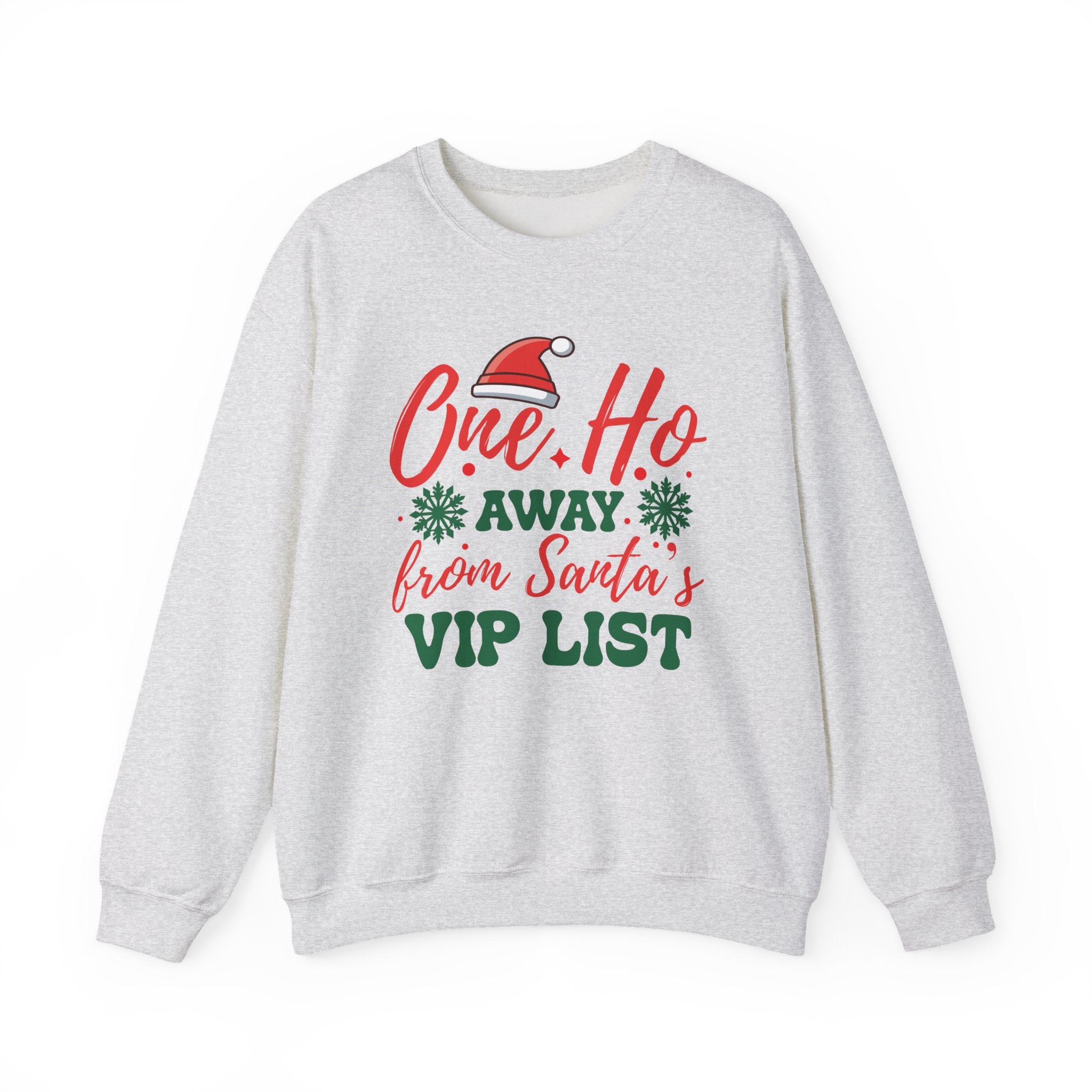 One Ho Away from Santa's VIP List Sweatshirt | Christmas Santa Hat Holiday