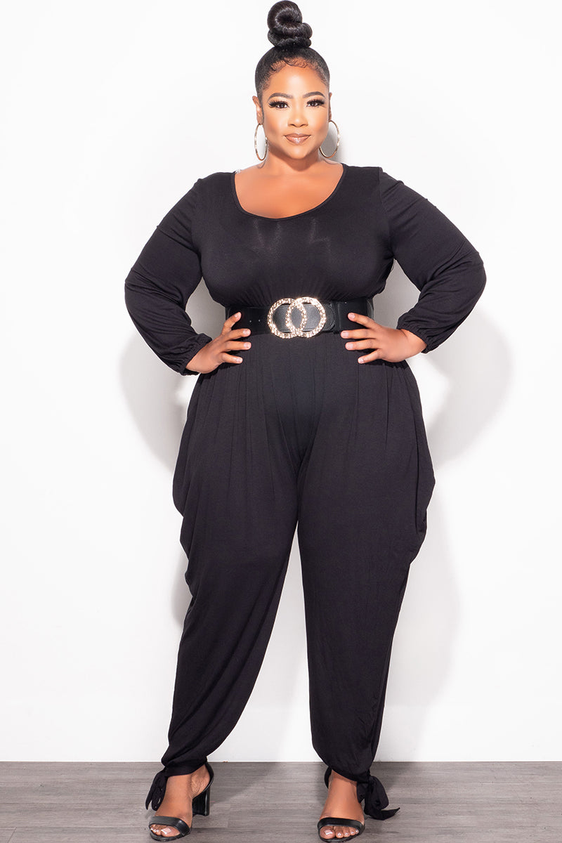 Final Sale Plus Size Harem Jumpsuit with Ankle Ties in Black