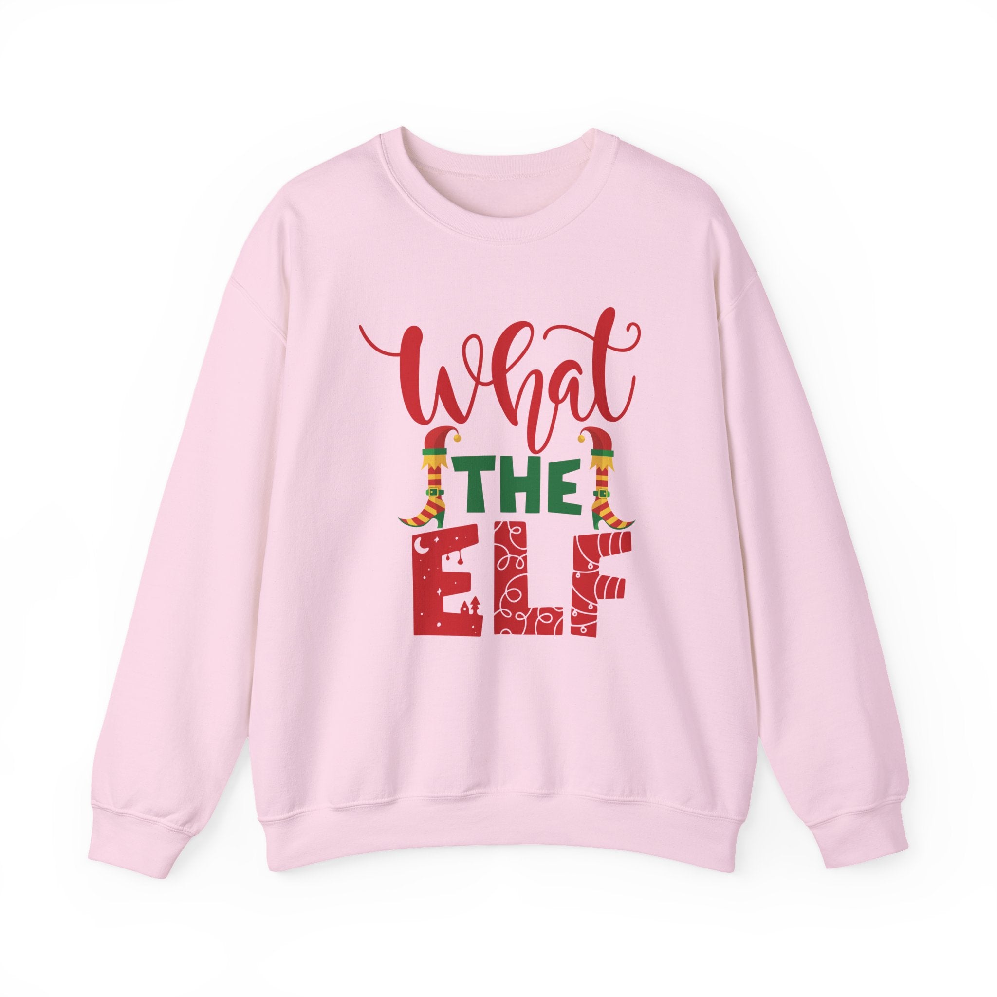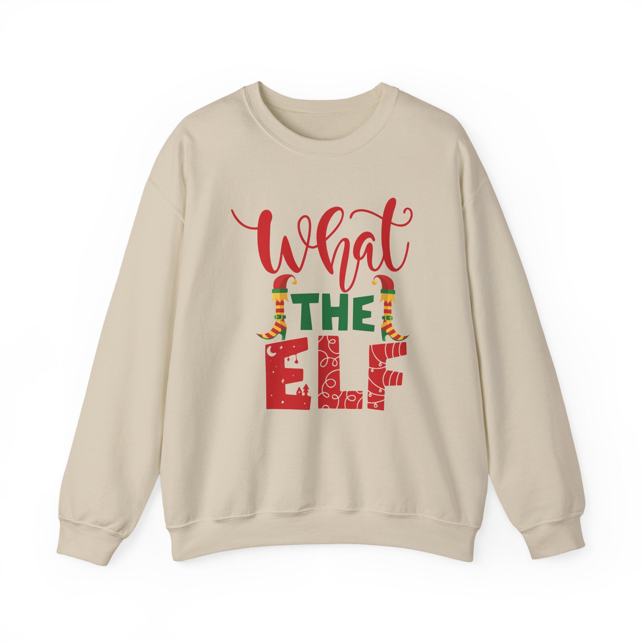 Cozy, cheeky, and built to last — this crewneck brings holiday mischief to your winter wardrobe. The soft, medium‑heavy cotton‑poly blend holds its shape while the ribbed collar and double‑needle stitching stand up to repeat wear. A playful, colorful “What the Elf” design sits proudly on the chest, turning a simple sweatshirt into a conversation starter at family dinners, holiday movie nights, or casual days of gift wrapping. It’s roomy without being bulky, made with ethically sourced cotton and safe, OEKO‑TEX dyes, and finished with smooth tear‑away labeling so you can get comfortable right away.Product features- 50/50 cotton‑poly medium‑heavy (8.0 oz/yd²) for warmth and durability- Tubular knit (no side seams) for a clean look and reduced fabric waste- Ribbed knit collar and double‑needle stitching for shape retention and strength- Embroidery and print options with DTF inner neck labels and DTG prints- OEKO‑TEX dyes; ethically grown US cotton; meets safety and compliance standardsCare instructions- Machine wash: cold (max 30C or 90F)- Non-chlorine: bleach as needed- Tumble dry: low heat- Do not iron- Do not dryclean
